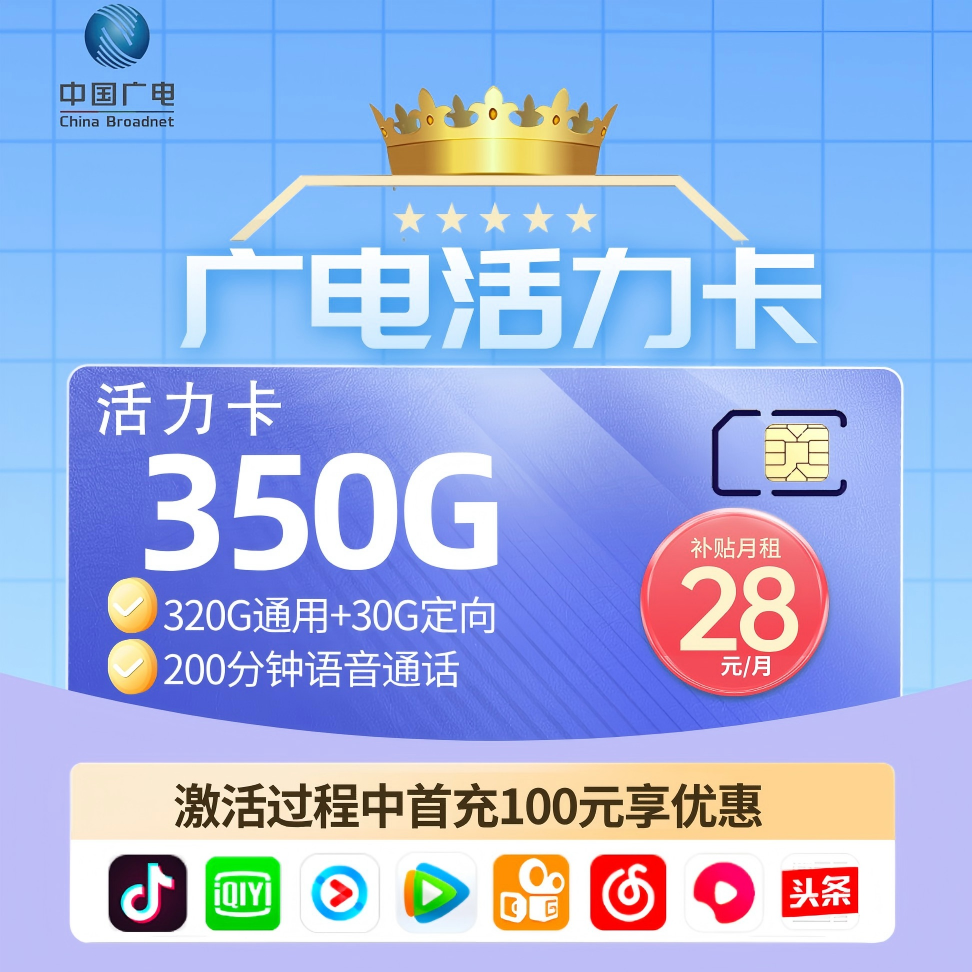 广电活力卡28元月享350G+200分钟【只发山东菏泽、临沂】