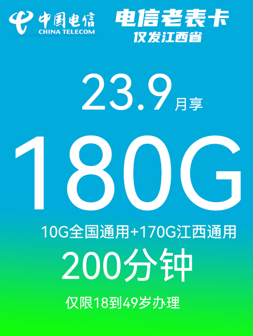 电信老表卡23.9元月享180G+200分钟通话【仅发江西】