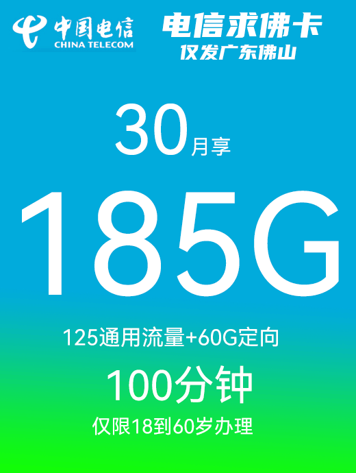 佛山电信求佛卡30元月享185G+100分钟+支持副卡(只发广东佛山)