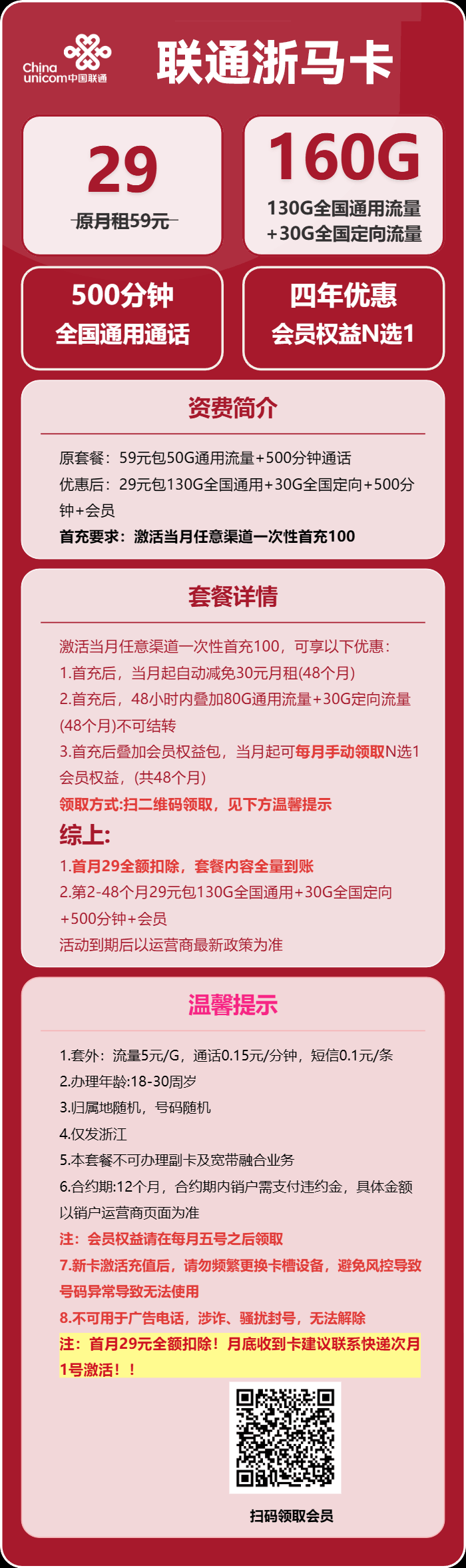 【海南联通】29元月享120G+100分钟
