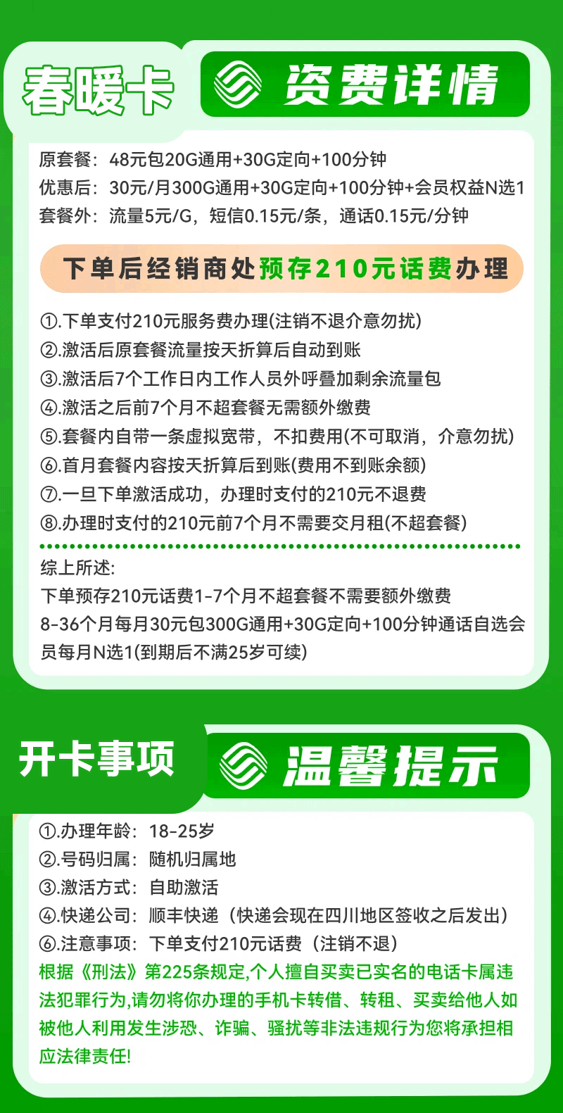 (18-25岁)三年移动春暖卡30元月享330G+100分钟+三年视频会员N选1(到期后不满25岁可续)