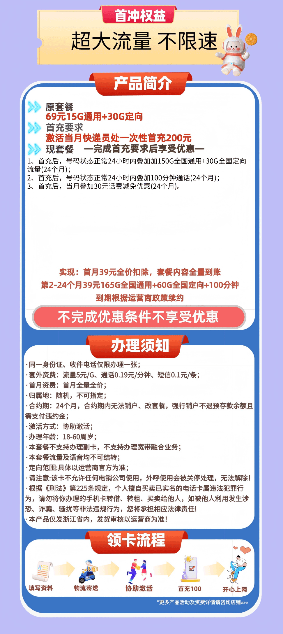 移动浙江卡39元月享225G+100分钟【只发浙江】【免费领取】