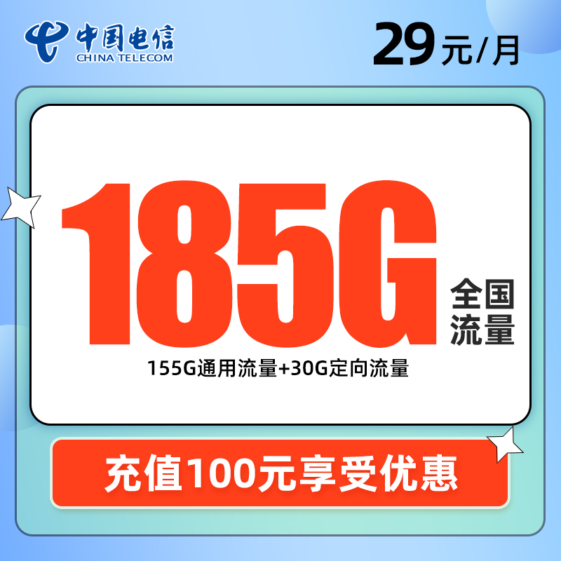 电信思蜀卡29元月享185G+0.1元/分钟(仅发四川)
