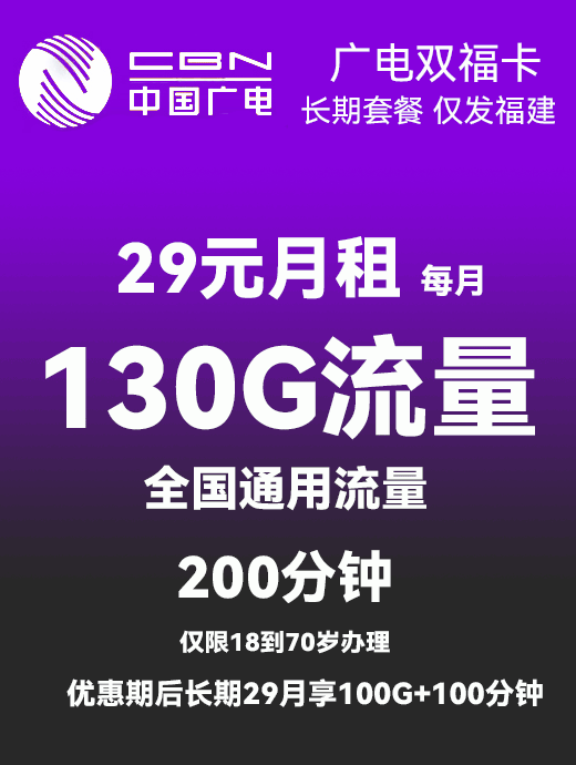 联通长享卡29元月享125G通用+100分钟【长期套餐】【发全国】