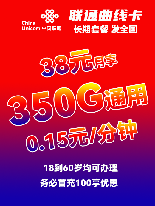 广东联通曲线卡长期38元月享350G通用(次月生效)【仅发广东】【下单立即联系客服审核】