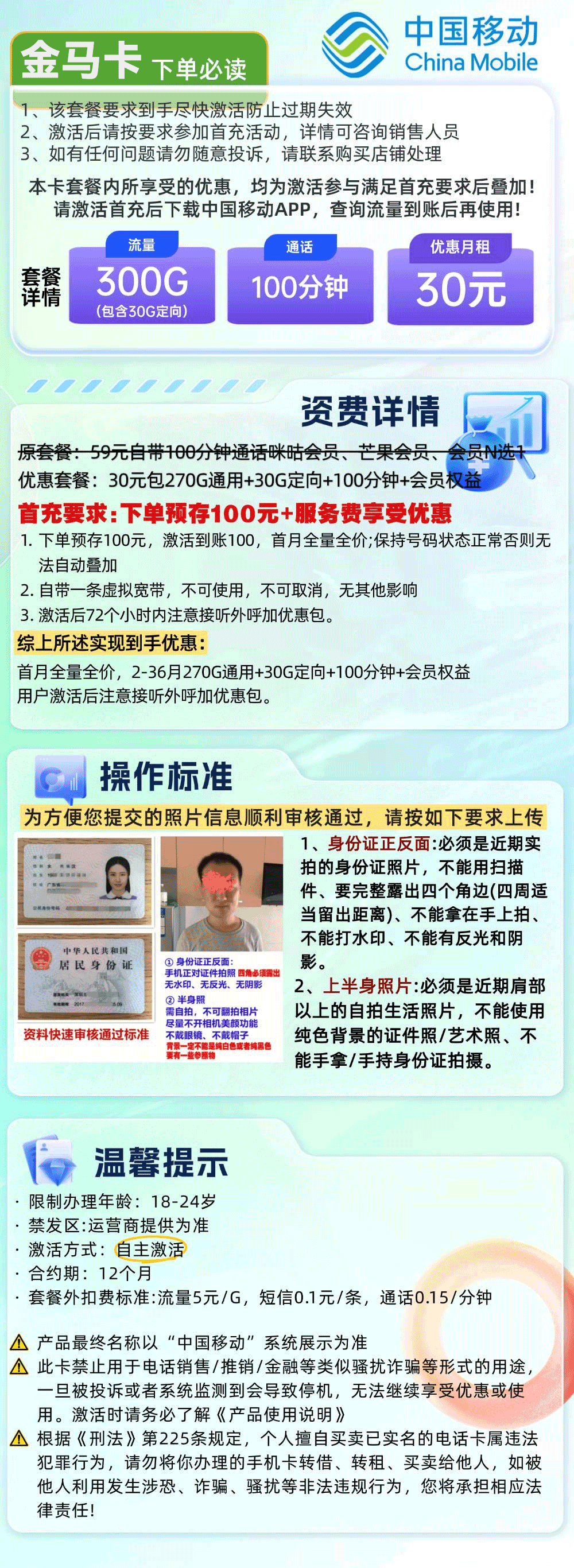 移动金马卡30元月享300G+100分钟+会员N选1