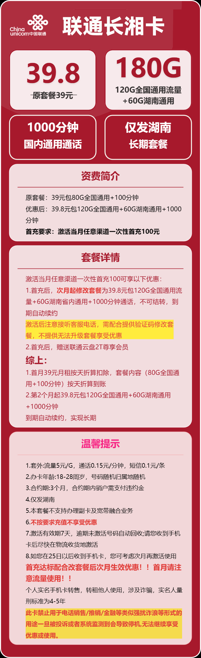 【海南联通】29元月享120G+100分钟