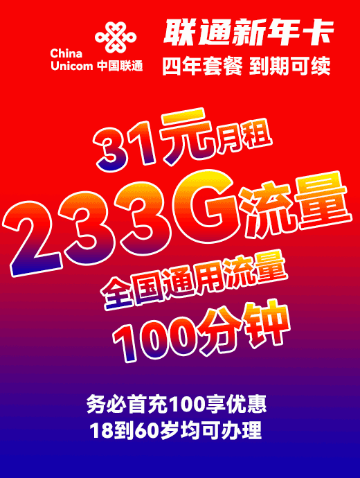 【联通语音】46.3元月享280G+900分钟