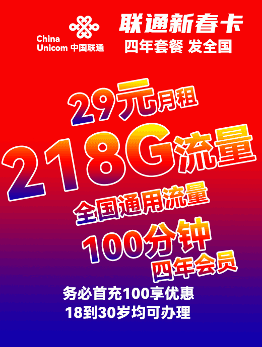 【海南联通】29元月享120G+100分钟