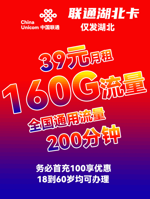 【河北神卡】39元月享500G+200分钟
