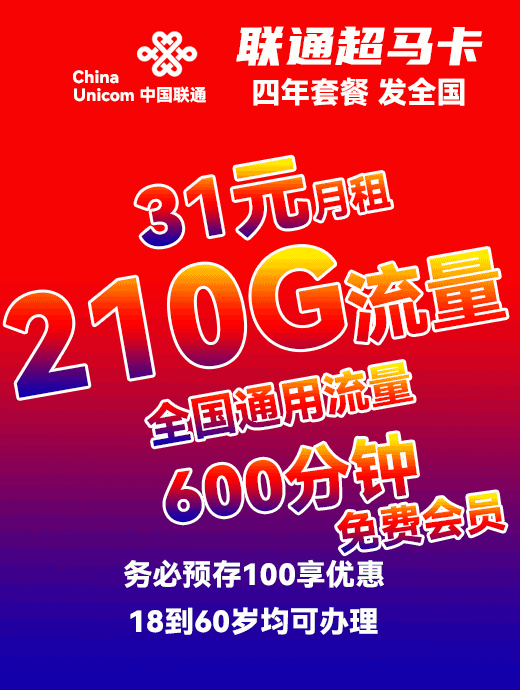 【联通爆品】29.9元月享310G➕600分钟+会员