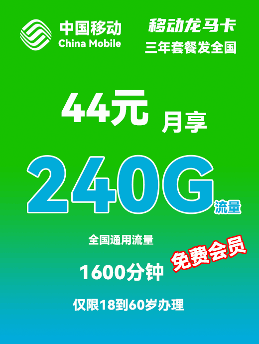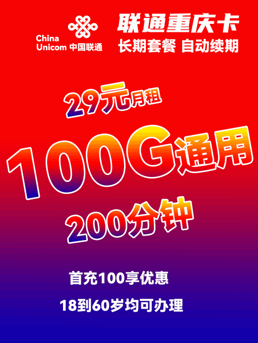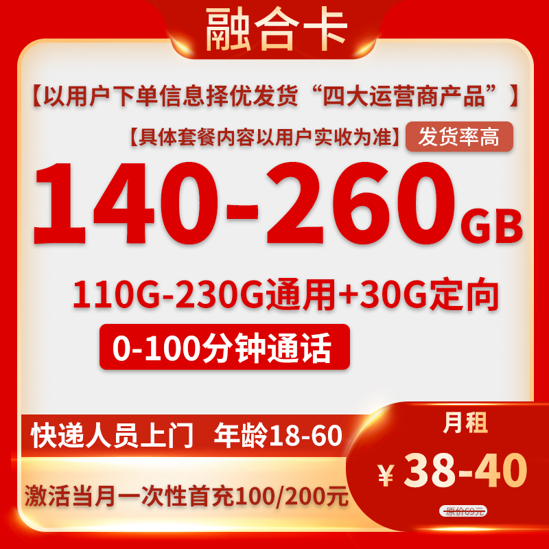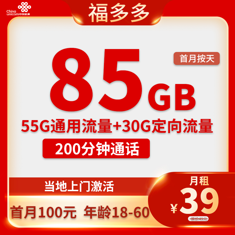 【联通长期】58元月享320G+100分钟+会员+支持副卡